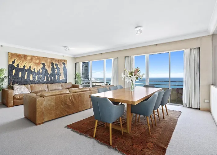 Das 200 m² große Apartment Step Back In Time In This Retro Chic 3 Bedroom Penthouse At Zenith - Q Stay Gold Coast befindet sich in Gold Coast weniger als 5 Gehminuten von den Surfers Paradise Beachfront Markets entfernt, und verwöhnt seine Gäste mit einem Jacuzzi und einer Sauna. Dieses Apartment befindet sich im Stadtviertel Coloane von Gold Coast, in 450 Meter Entfernung zu den Handwerksmärkten.